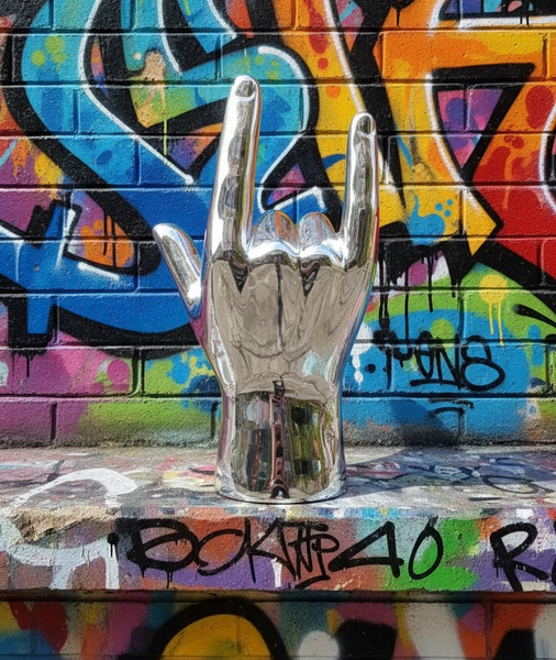 This sleek tabletop accent piece showcases the timeless "I love you" hand sign, bringing a touch of contemporary charm to any space.